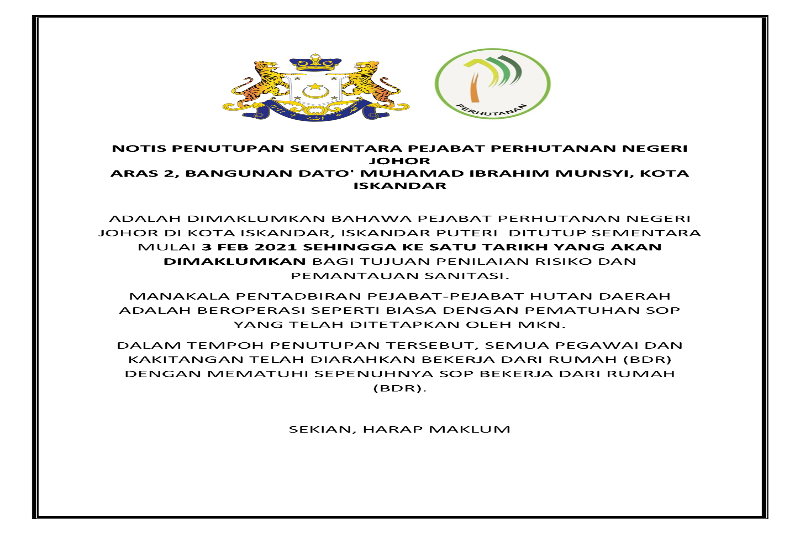 NOTIS PENUTUPAN SEMENTARA PEJABAT PERHUTANAN NEGERI JOHOR