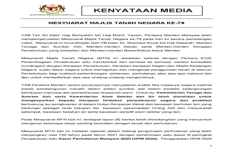 Mesyuarat Majlis Tanah Negara (MTN) ke-78
