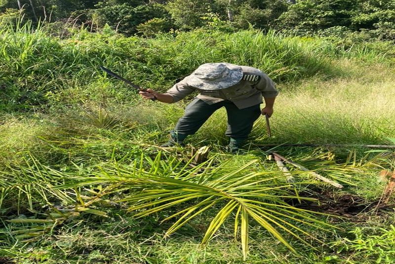OPERASI BERSEPADU PEMUSNAHAN TANAMAN KELAPA SAWIT DALAM HUTAN SIMPAN AYER HITAM UTARA BERSAMA PEJABAT TANAH DAERAH MUAR DAN PEJABAT HUTAN DAERAH JOHOR UTARA