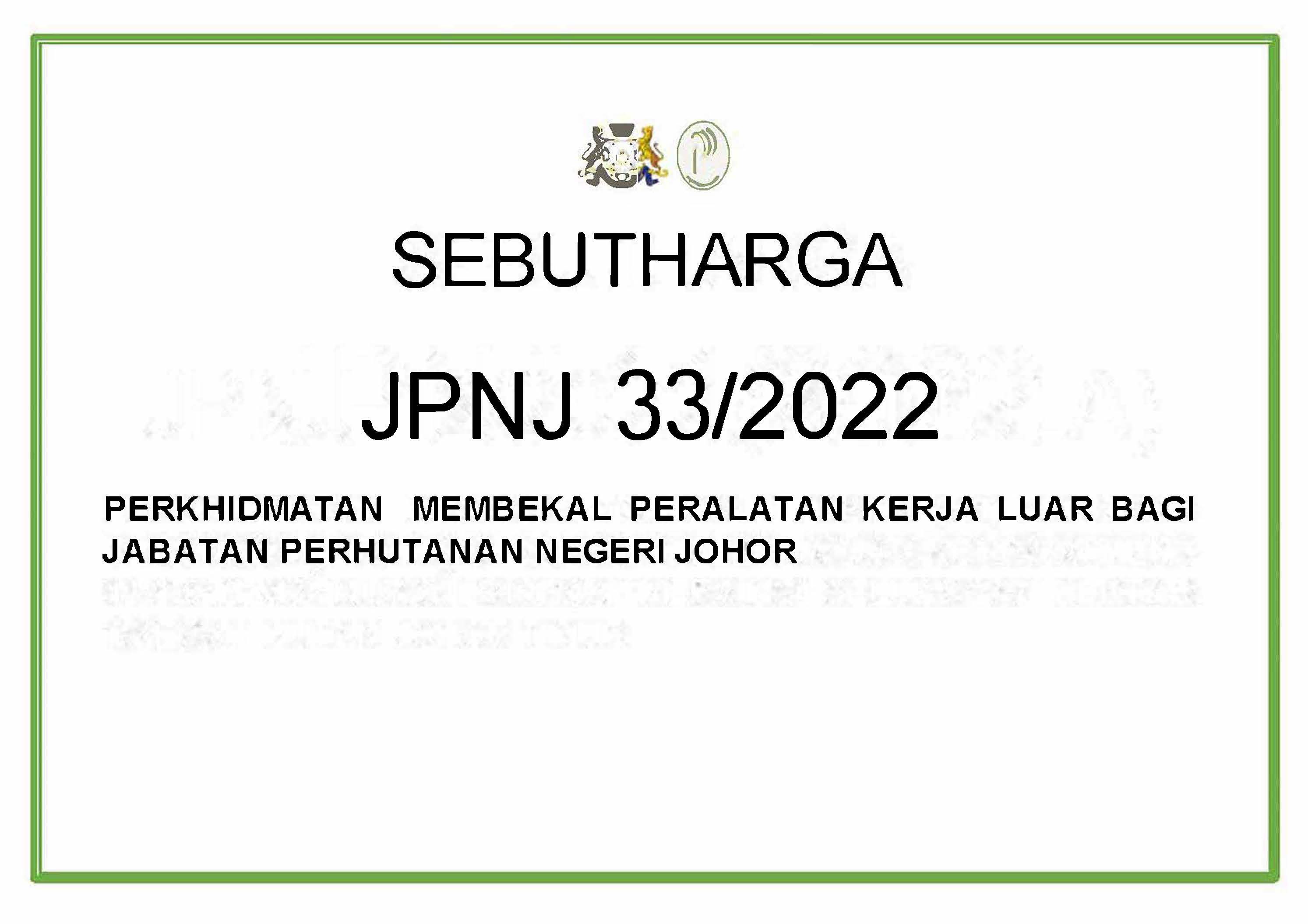 JPNJ 33/2022 BAGI PERKHIDMATAN MEMBEKAL PERALATAN KERJA LUAR BAGI JABATAN PERHUTANAN NEGERI JOHOR