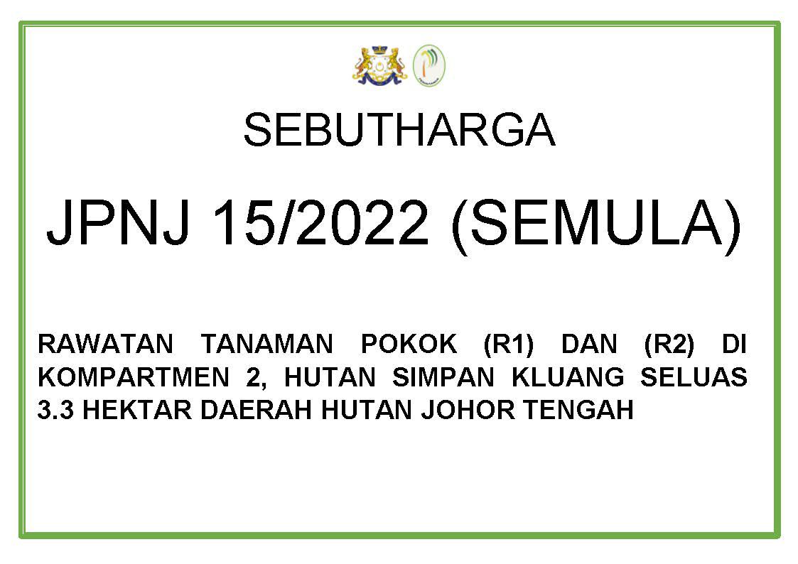 JPNJ 15/2022 (SEMULA) BAGI PERKHIDMATAN RAWATAN TANAMAN POKOK (R1) DAN (R2) DI KOMPARTMEN 2, HUTAN SIMPAN KLUANG SELUAS 3.3 HEKTAR DAERAH HUTAN JOHOR TENGAH