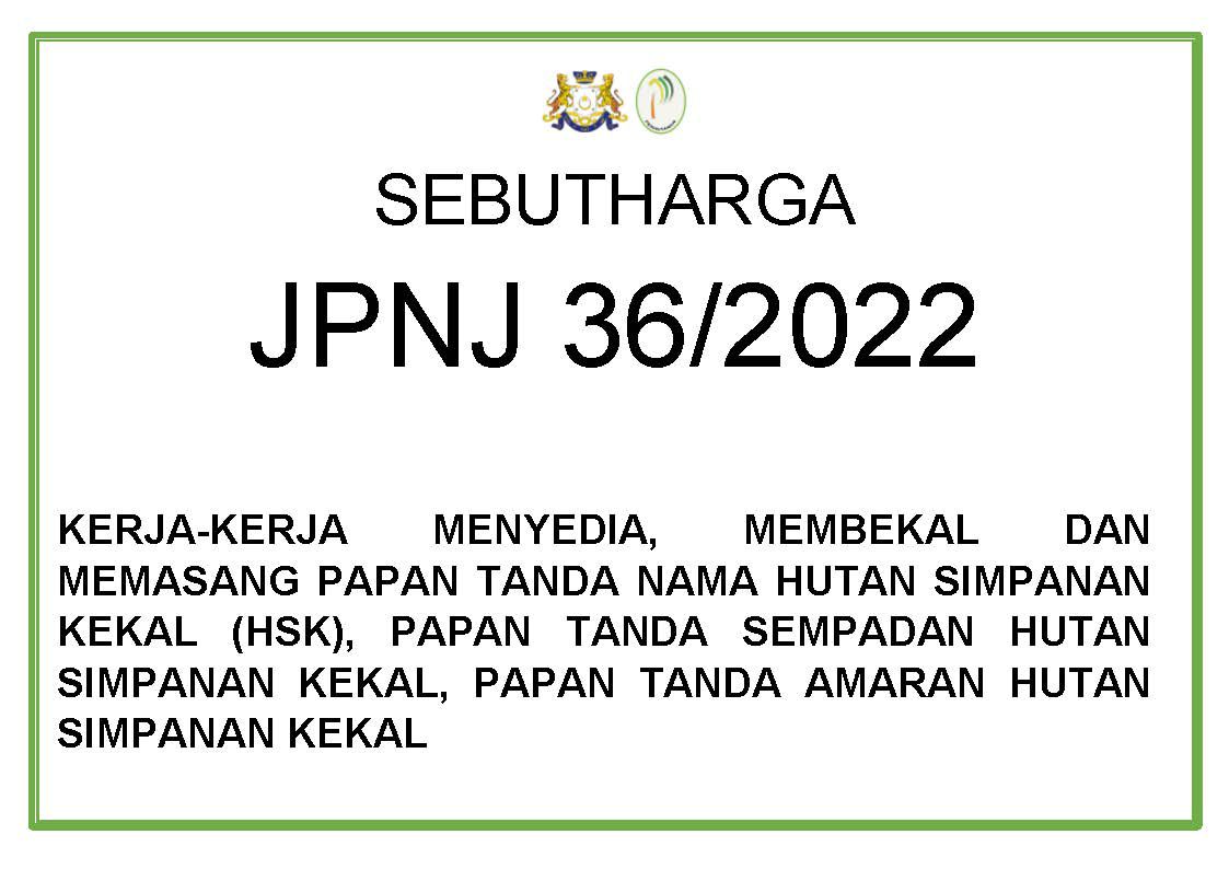 JPNJ 36/2022 BAGI KERJA-KERJA MENYEDIA, MEMBEKAL DAN MEMASANG PAPAN TANDA NAMA HUTAN SIMPANAN KEKAL (HSK), PAPAN TANDA SEMPADAN HUTAN SIMPANAN KEKAL, PAPAN TANDA AMARAN HUTAN SIMPANAN KEKAL