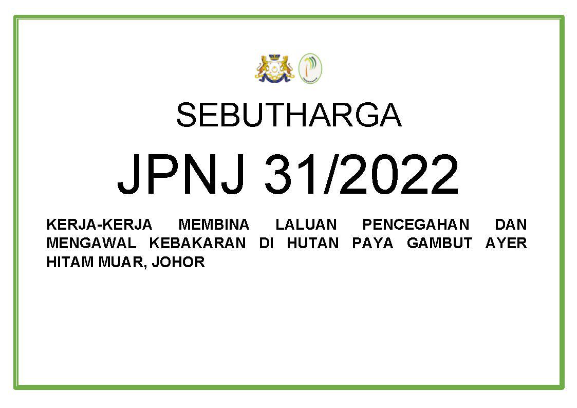 JPNJ 31/2022 BAGI PERKHIDMATAN KERJA-KERJA MEMBINA LALUAN PENCEGAHAN DAN MENGAWAL KEBAKARAN DI HUTAN PAYA GAMBUT AYER HITAM MUAR, JOHOR