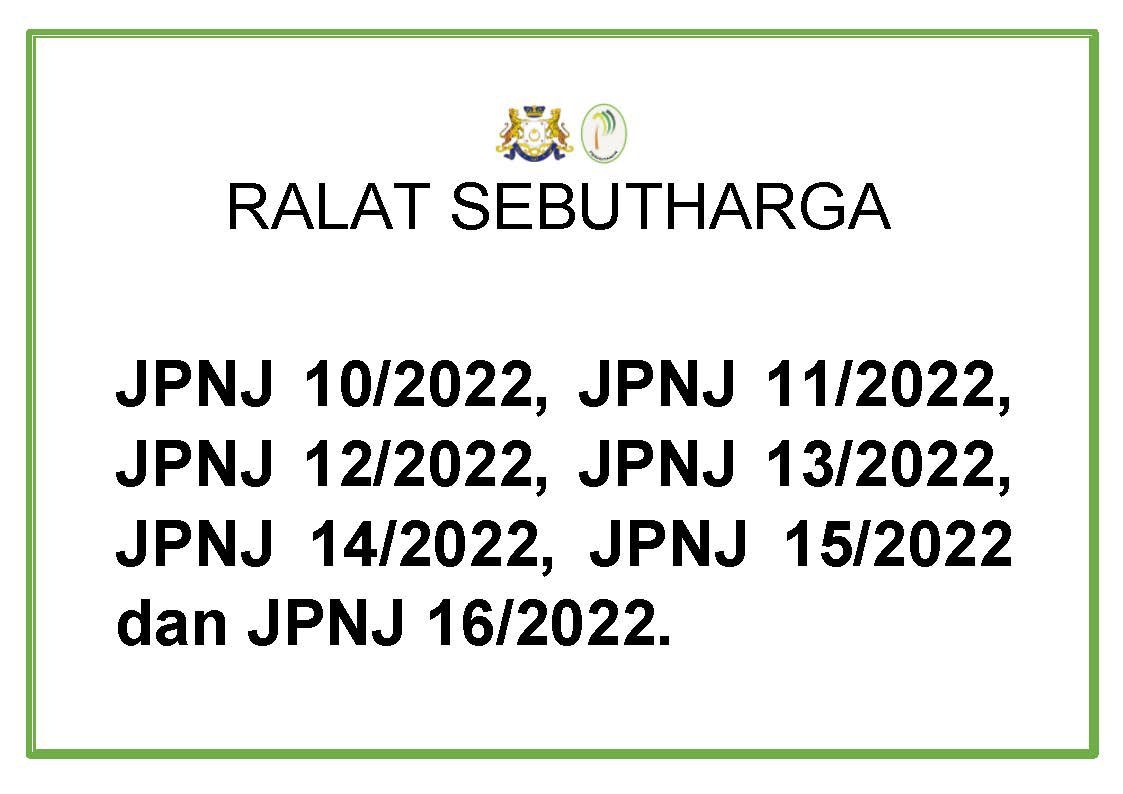 RALAT bagi Sebutharga JPNJ 10/2022, JPNJ 11/2022, JPNJ 12/2022, JPNJ 13/2022, JPNJ 14/2022, JPNJ 15/2022 dan JPNJ 16/2022.