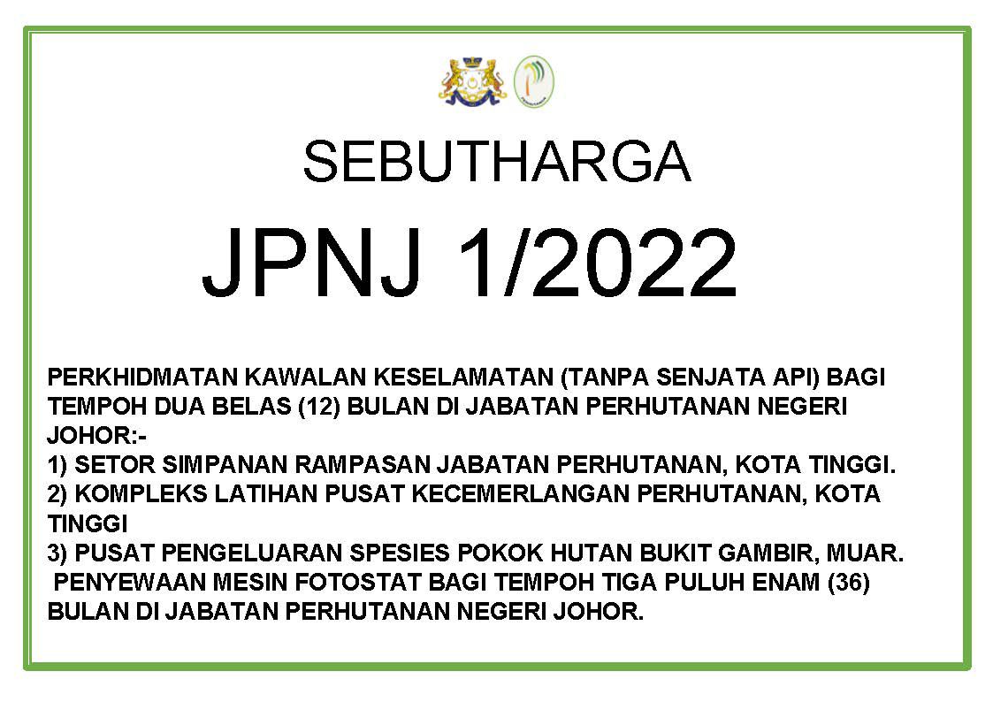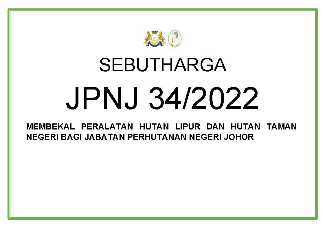 JPNJ 34/2022 JABATAN PERHUTANAN NEGERI JOHOR MEMPELAWA TUAN/PUAN UNTUK MENYERTAI TAWARAN SEBUTHARGA JPNJ 34/2022 BAGI PERKHIDMATAN MEMBEKAL PERALATAN HUTAN LIPUR DAN HUTAN TAMAN NEGERI BAGI JABATAN PERHUTANAN NEGERI JOHOR