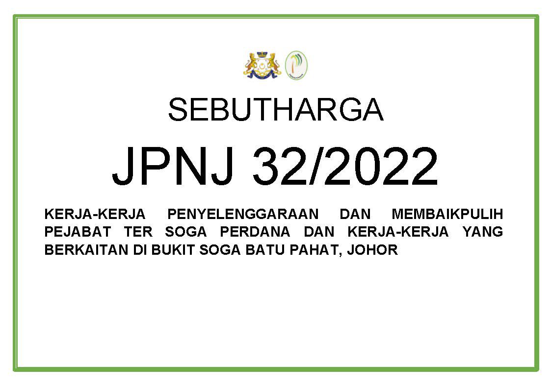 JPNJ 32/2022 BAGI PERKHIDMATAN KERJA-KERJA PENYELENGGARAAN DAN MEMBAIKPULIH PEJABAT TER SOGA PERDANA DAN KERJA-KERJA YANG BERKAITAN DI BUKIT SOGA BATU PAHAT, JOHOR