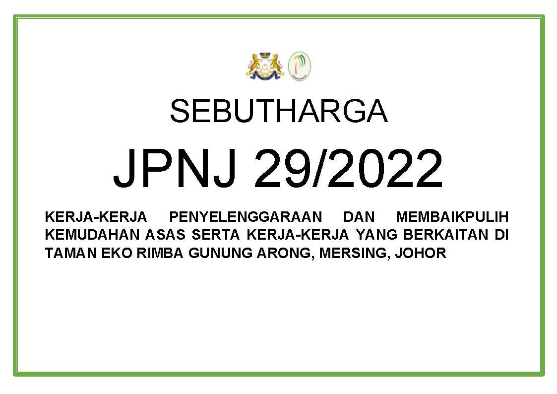 JPNJ 29/2022 BAGI PERKHIDMATAN KERJA-KERJA PENYELENGGARAAN DAN MEMBAIKPULIH KEMUDAHAN ASAS SERTA KERJA-KERJA YANG BERKAITAN DI TAMAN EKO RIMBA GUNUNG ARONG, MERSING, JOHOR