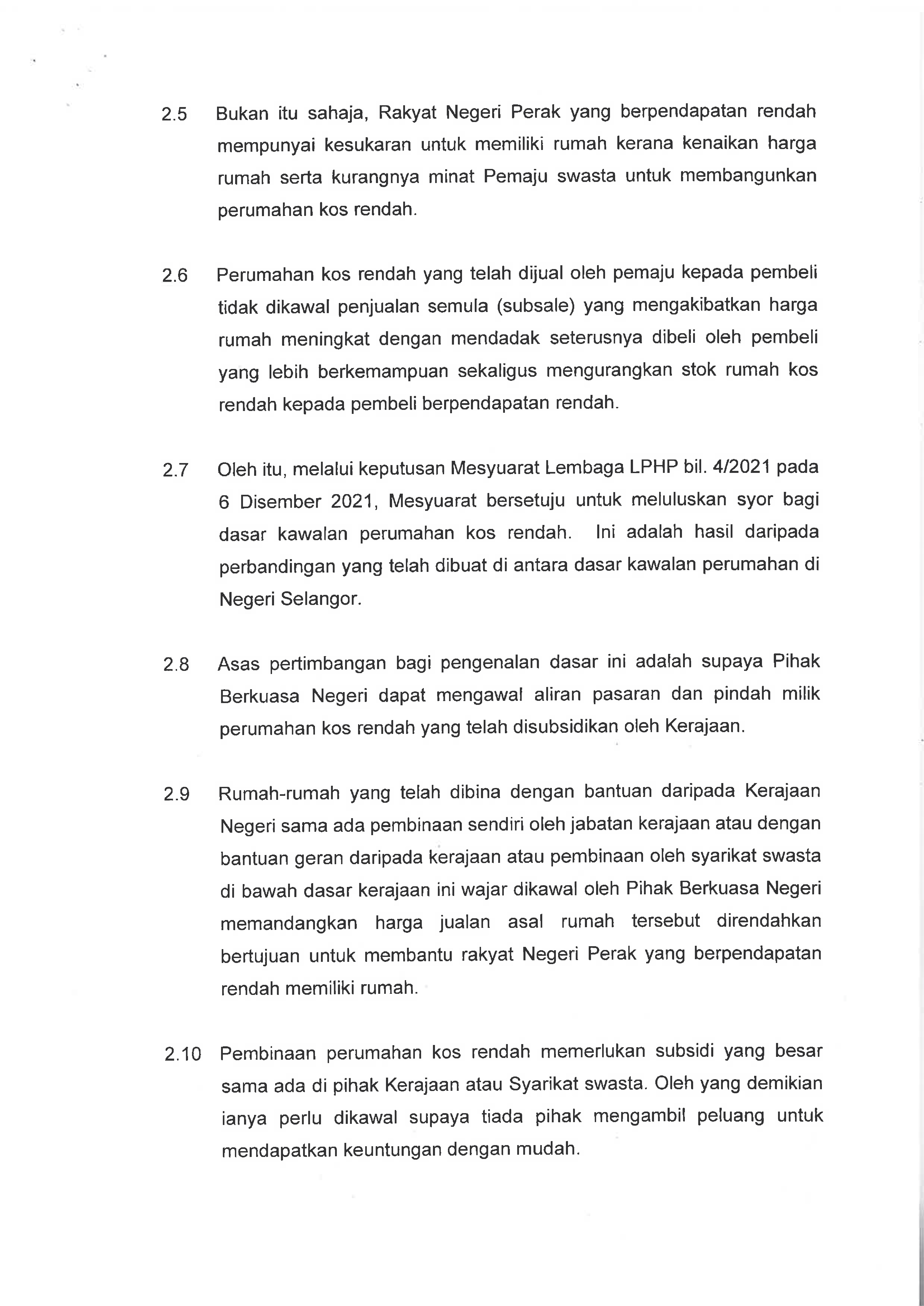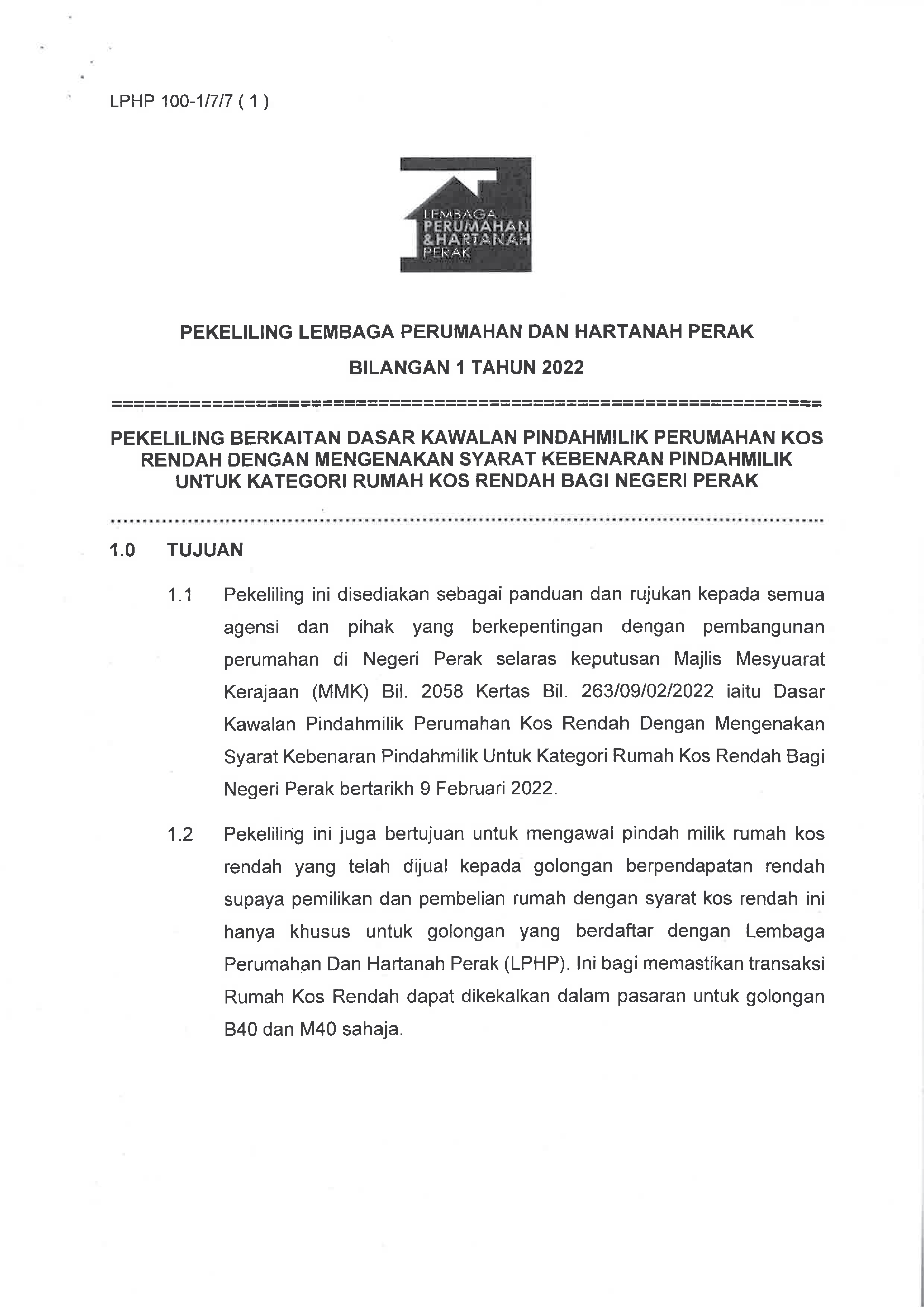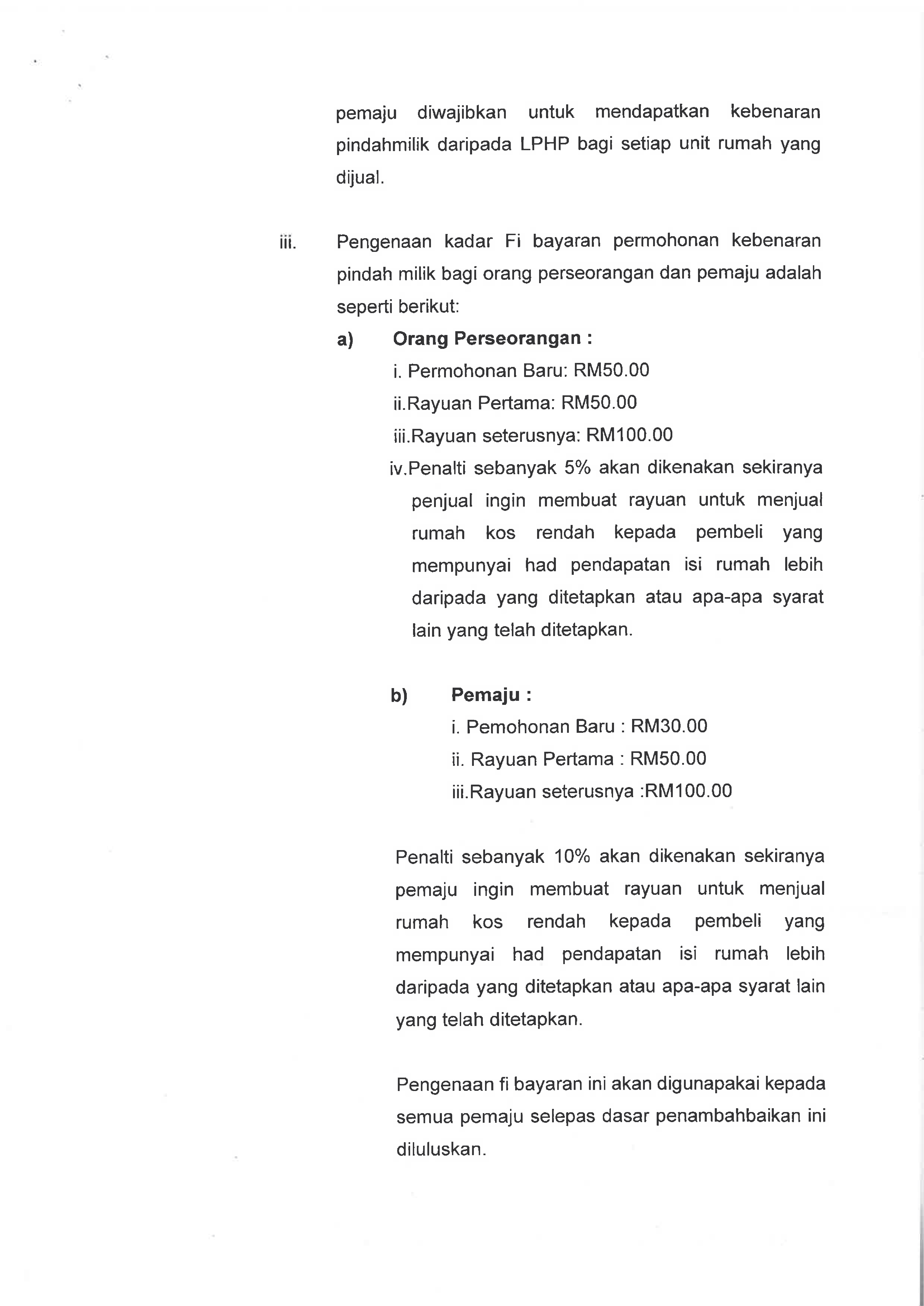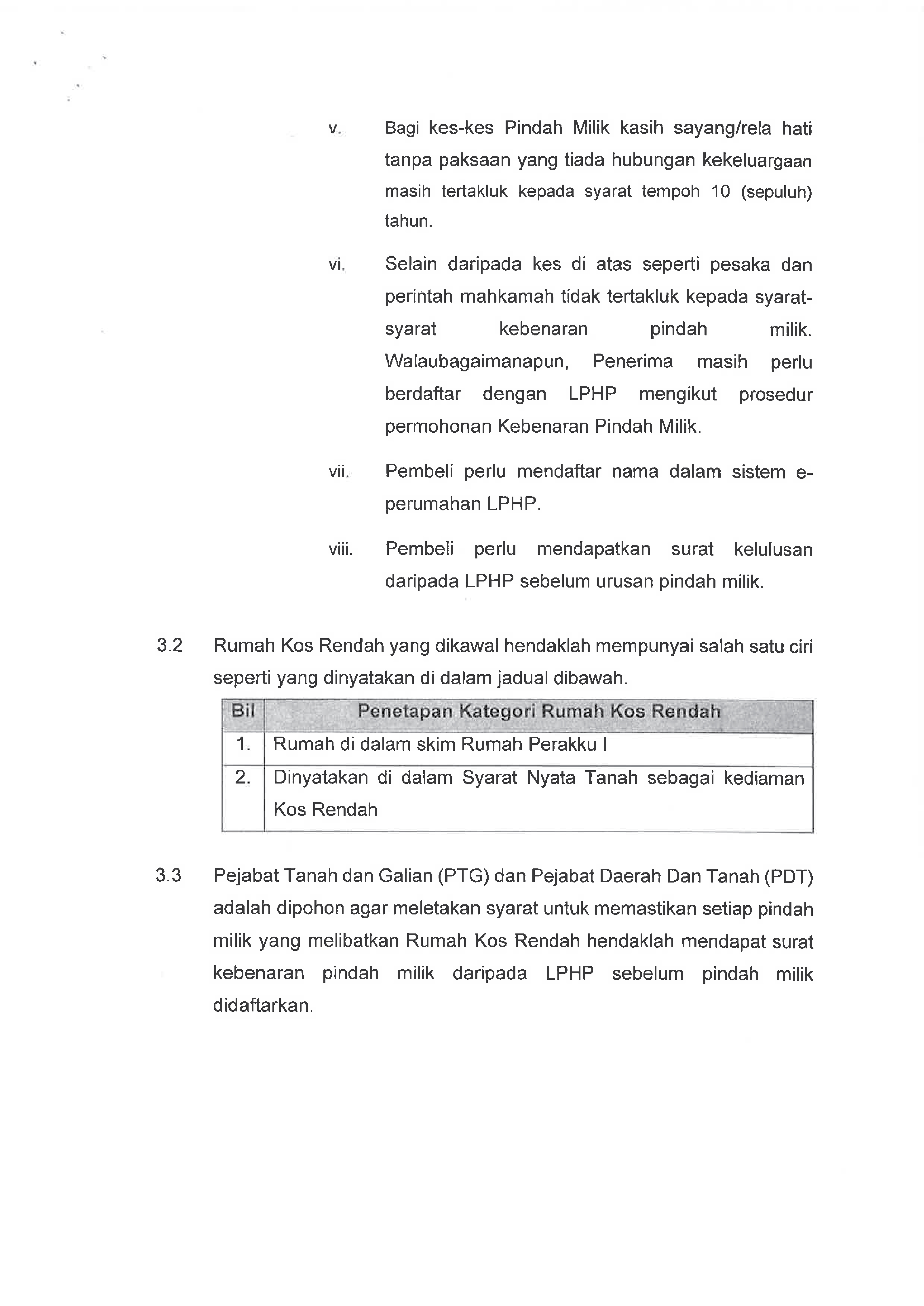 Pekeliling Berkaitan Dasar Kawalan Pindahmilik Perumahan Kos Rendah
