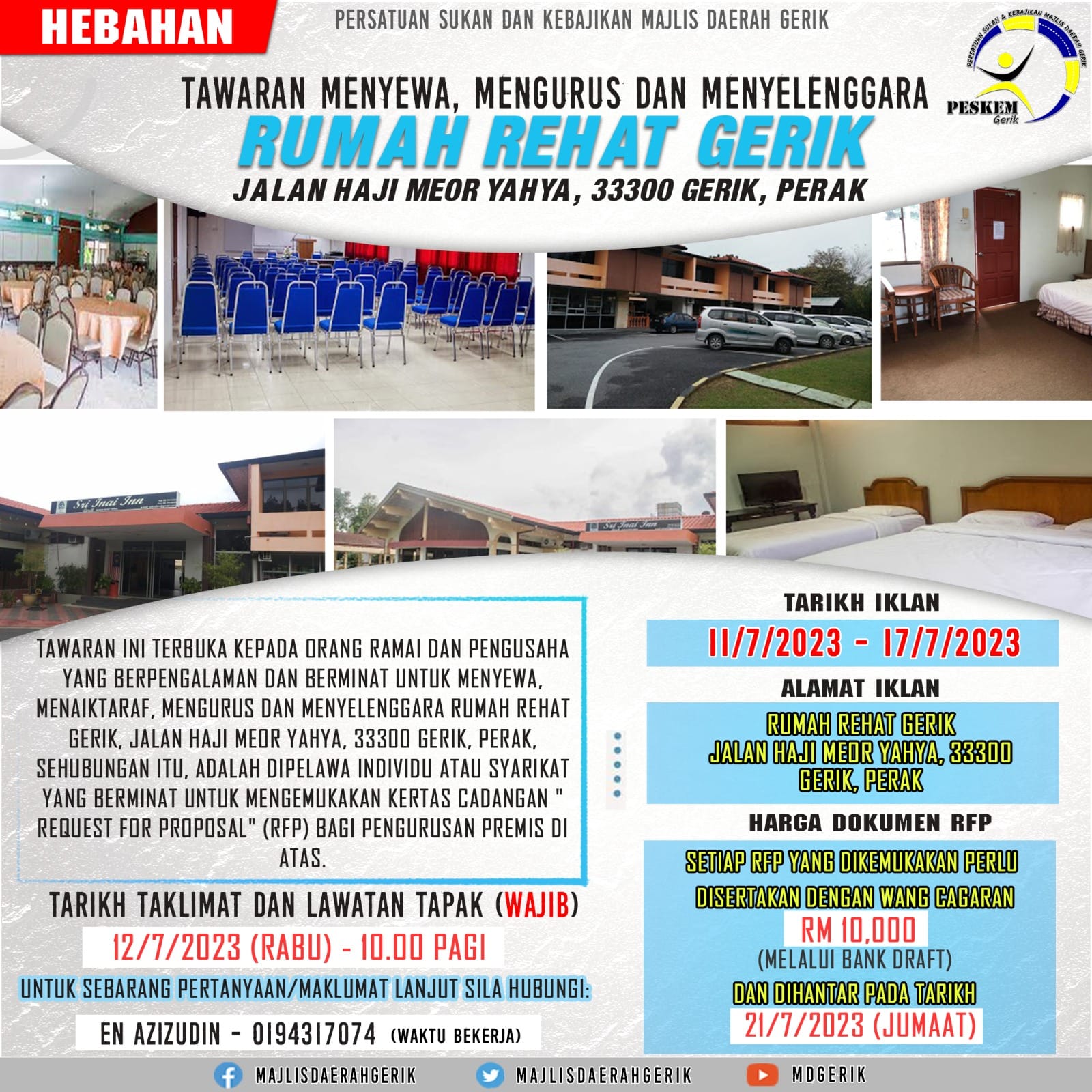 TAWARAN MENYEWA, MENGURUS DAN MENYELENGGARA RUMAH REHAT GERIK.