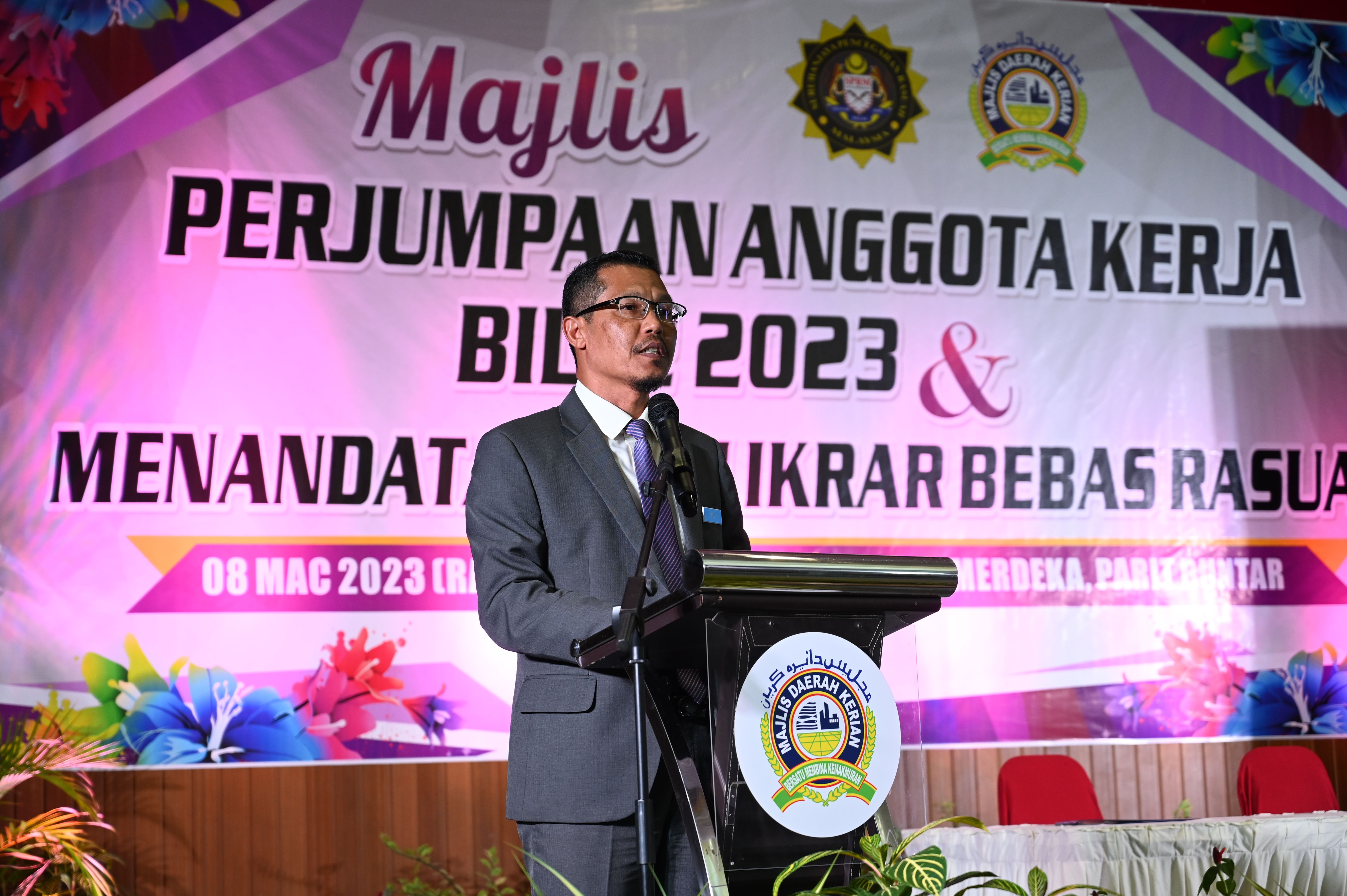 8 Mac 2023 – Majlis Daerah Kerian (MDK) melalui Unit Integriti telah mengadakan Majlis Menandatangani Ikrar Bebas Rasuah (IBR) sempena Majlis Perjumpaan Kakitangan bil 2/2023 di Dewan Merdeka, Parit Buntar khusus untuk warga MDK bersama Tuan Helmi Bin Yusof@Jusoh, Yang Dipertua MDK.