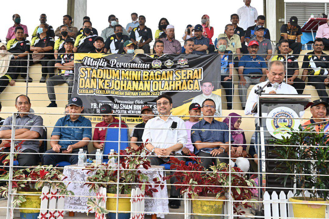 19 Julai – Majlis Perasmian Stadium Mini Bagan Serai dan Kejohanan Olahraga Sekolah-Sekolah Rendah Daerah Kerian bagi tahun 2022 telah disempurnakan oleh YB. Dato’ Haji Sham bin Mat Sahat, Setiausaha Politik Menteri Besar Perak merangkap ADUN Alor Pongsu. Kejohanan olahraga kali ke-55 ini diadakan selama 3 hari bermula dari 19-21 Julai 2022. Majlis dimeriahkan dengan perarakan perbarisan sebanyak 70 buah sekolah rendah serta larian obor yang diketuai oleh Encik Mohd Zaki bin Sadri, bekas jaguh lompat jauh dan lompat kijang negara yang berasal dari Tanah Kebun, Parit Buntar.