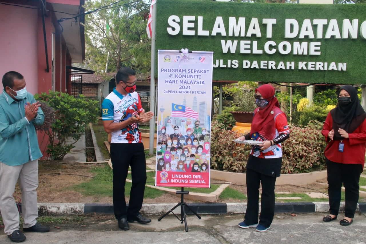 15 September 2021 – Pejabat Penerangan Daerah Kerian dengan Kerjasama Majlis Daerah Kerian telah mengadakan satu program Sepakat @ Komuniti Kempen Kibar Jalur Gemilang sempena hari Malaysia 2021 bertempat di perkarangan parkir pejabat Majlis Daerah Kerian. Majlis disempurnakan oleh Yang Dipertua Majlis Tuan Helmi bin Yusof @ Jusoh dan turut dihadiri oleh Encik Faridz bin Hashim wakil Penerangan Daerah Kerian, Setiausaha Majlis, Ahli-Ahli Majlis serta Ketua-Ketua Jabatan MDkerian. Yang Dipertua Majlis turut menyampaikan bakul makanan (Miskin Bandar) kepada 5 peserta terpilih dan melekatkan bendera di kenderaan ahli majlis dan jabatan.