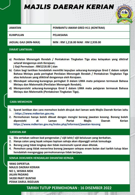 PEMBANTU AWAM GRED H11 (KONTRAK)