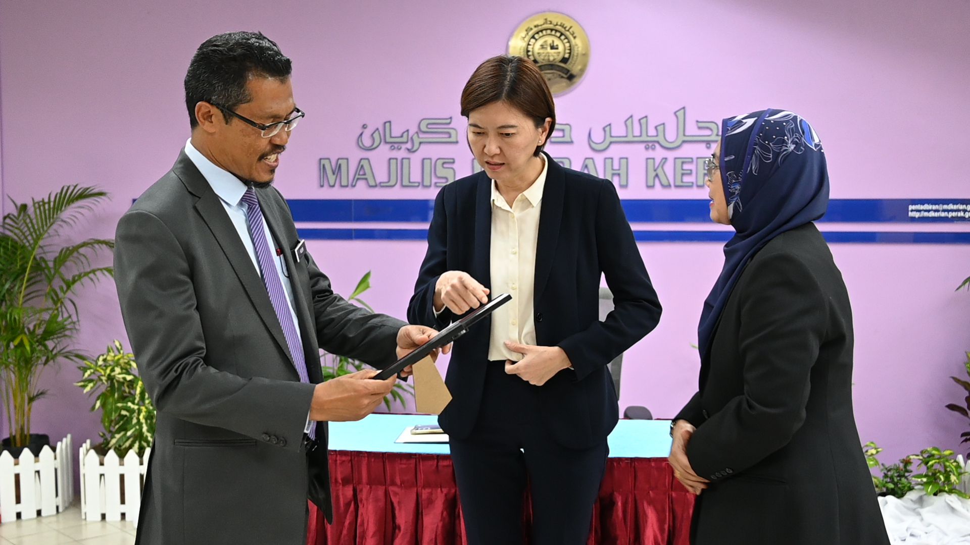 27 Februari 2023- Majlis Daerah Kerian amat berbesar hati kerana telah menerima kunjungan hormat daripada YB Puan Sandrea Ng Shy Ching, Pengerusi Jawatankuasa Perumahan & Kerajaan Tempatan Negeri Perak . Kunjungan YB. Exco disambut oleh Yang Dipertua Majlis Tuan Helmi bin Yusof @ Jusoh serta Ketua-Ketua Jabatan Majlis. Kunjungan ini diadakan sempena Majlis Perakuan Penerimaan Jawatan Sebagai Ahli Majlis, Majlis Daerah Kerian dan Taklimat Pengurusan yang disampaikan oleh Puan Norhafisah binti Haji Mohamad, Setiausaha Majlis. Dalam kunjungan ini juga, YB Puan Sandrea Ng Shy Ching sempat beramah mesra bersama anggota kerja Majlis Daerah Kerian.