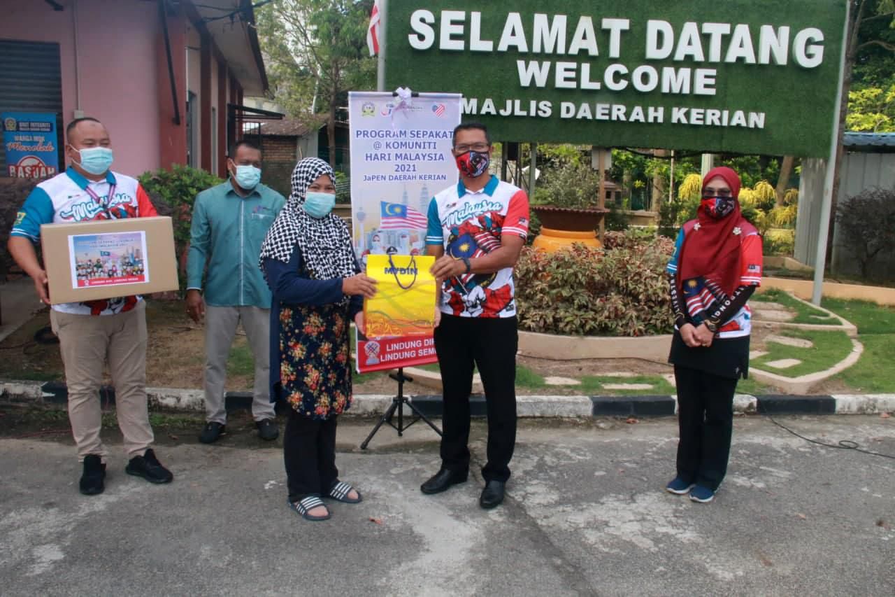 15 September 2021 – Pejabat Penerangan Daerah Kerian dengan Kerjasama Majlis Daerah Kerian telah mengadakan satu program Sepakat @ Komuniti Kempen Kibar Jalur Gemilang sempena hari Malaysia 2021 bertempat di perkarangan parkir pejabat Majlis Daerah Kerian. Majlis disempurnakan oleh Yang Dipertua Majlis Tuan Helmi bin Yusof @ Jusoh dan turut dihadiri oleh Encik Faridz bin Hashim wakil Penerangan Daerah Kerian, Setiausaha Majlis, Ahli-Ahli Majlis serta Ketua-Ketua Jabatan MDkerian. Yang Dipertua Majlis turut menyampaikan bakul makanan (Miskin Bandar) kepada 5 peserta terpilih dan melekatkan bendera di kenderaan ahli majlis dan jabatan.