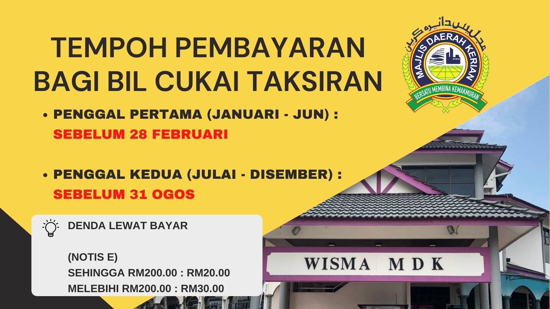 - Tempoh pembayaran bagi Bil Cukai Taksiran :