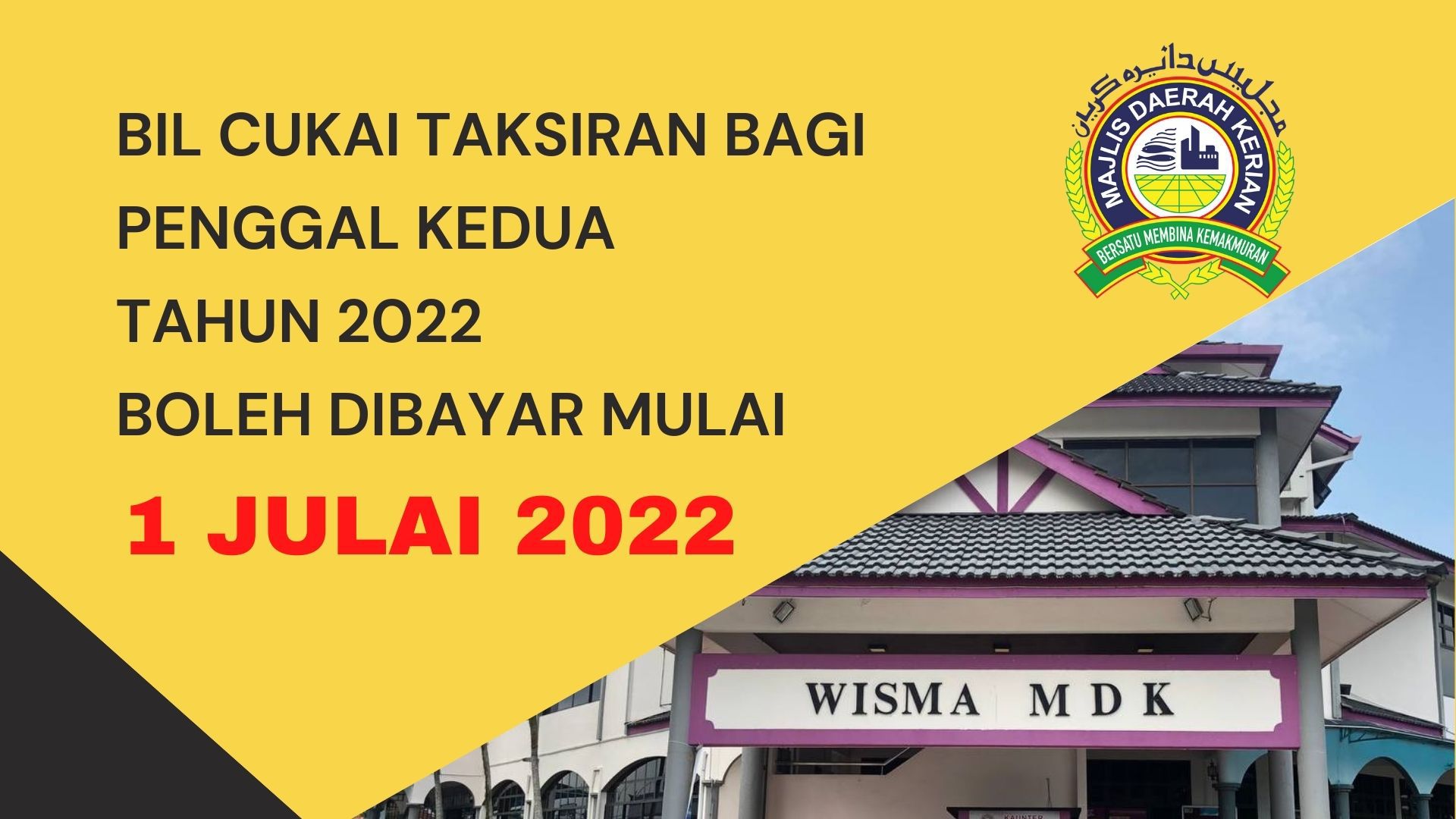 - Bil Cukai Taksiran bagi Penggal Kedua Tahun 2022 boleh dibayar mulai 1 JULAI 2022