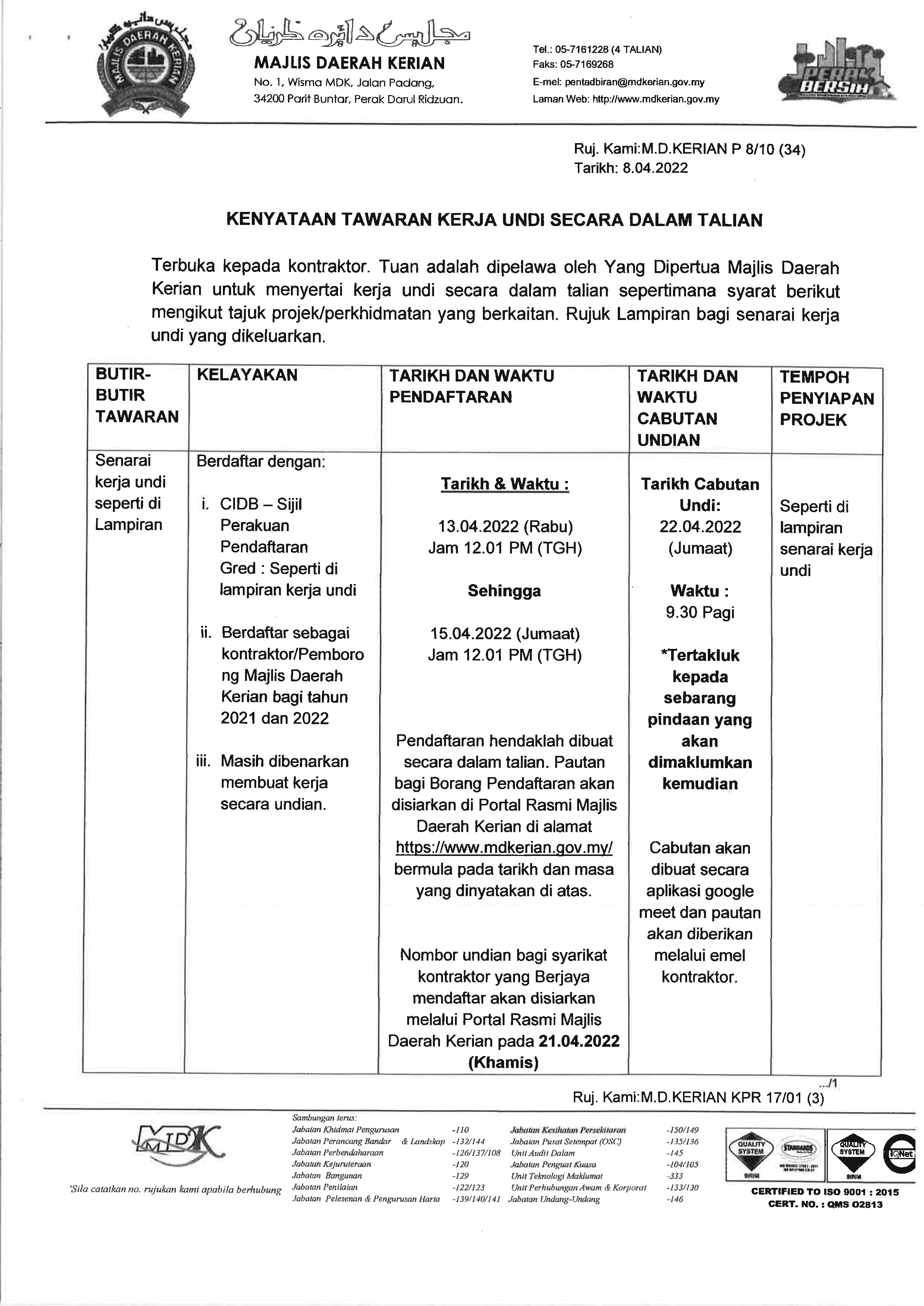 SILA KLIK DI SINI UNTUK SENARAI KERJA-KERJA BAGI CABUTAN UNDI MAJLIS DAERAH KERIAN