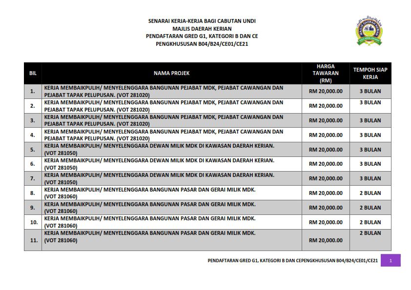 📝 Butiran serta syarat-syarat tawaran adalah seperti yang dilampirkan di bawah.