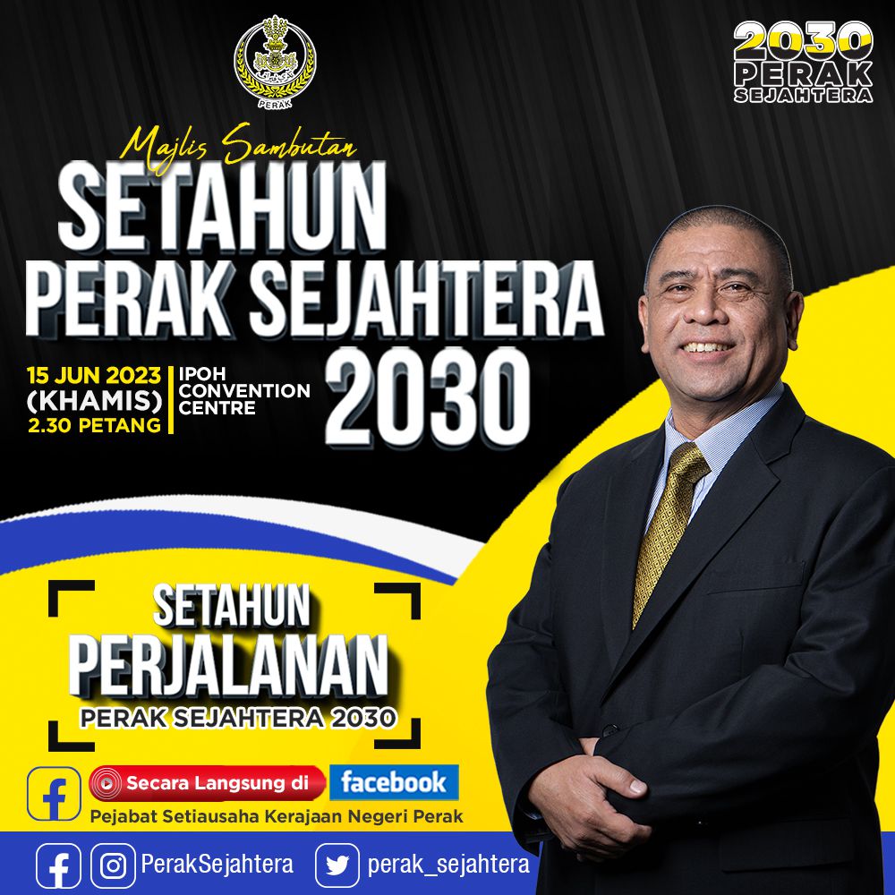 Ikuti siaran langsung Majlis Sambutan Setahun Perak Sejahtera 2030 di 𝐅𝐁 𝐑𝐚𝐬𝐦𝐢 𝐏𝐞𝐣𝐚𝐛𝐚𝐭 𝐒𝐞𝐭𝐢𝐚𝐮𝐬𝐚𝐡𝐚 𝐊𝐞𝐫𝐚𝐣𝐚𝐚𝐧 𝐍𝐞𝐠𝐞𝐫𝐢 𝐏𝐞𝐫𝐚𝐤 𝐩𝐚𝐝𝐚 𝟏𝟓 𝐉𝐮𝐧 𝟐𝟎𝟐𝟑 (𝐊𝐡𝐚𝐦𝐢𝐬) 𝐣𝐚𝐦 𝟐.𝟑𝟎 𝐩𝐞𝐭𝐚𝐧𝐠.