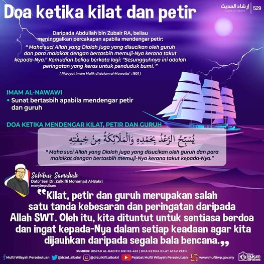 " Ya Allah! Ya Tuhanku, sesungguhnya aku memohon kepada-Mu akan kebaikan angin ini dan kebaikan apa yang terkandung di dalamnya, serta segala kebaikan yang dibawanya, dan aku memohon perlindungan dengan-Mu daripada keburukan angin ini dan keburukan apa yang terkandung di dalamnya serta segala keburukan yang dibawanya "