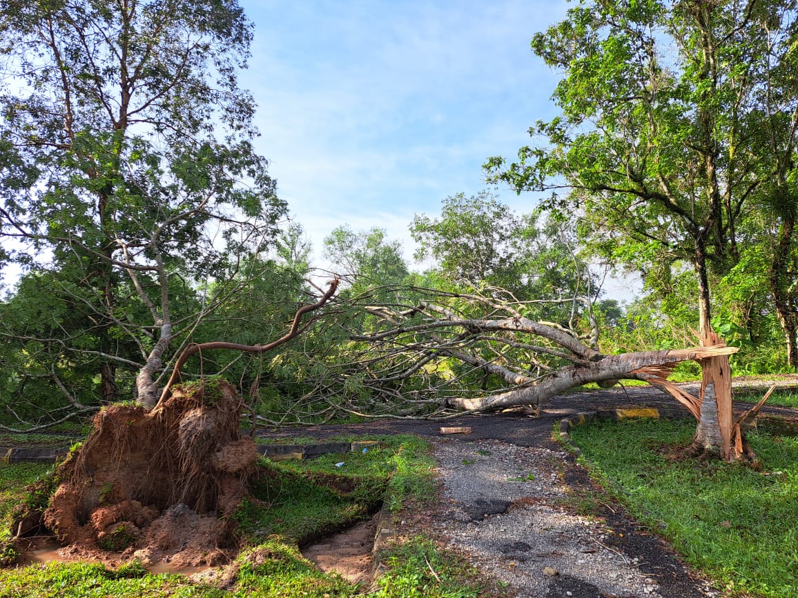 4. Banyak pokok yang tumbang dan dahan yang patah. Tindakan pembersihan sedang dijalankan secara berperingkat bersama pelbagai agensi dan kontraktor Puncak Emas Infra Sdn Bhd.