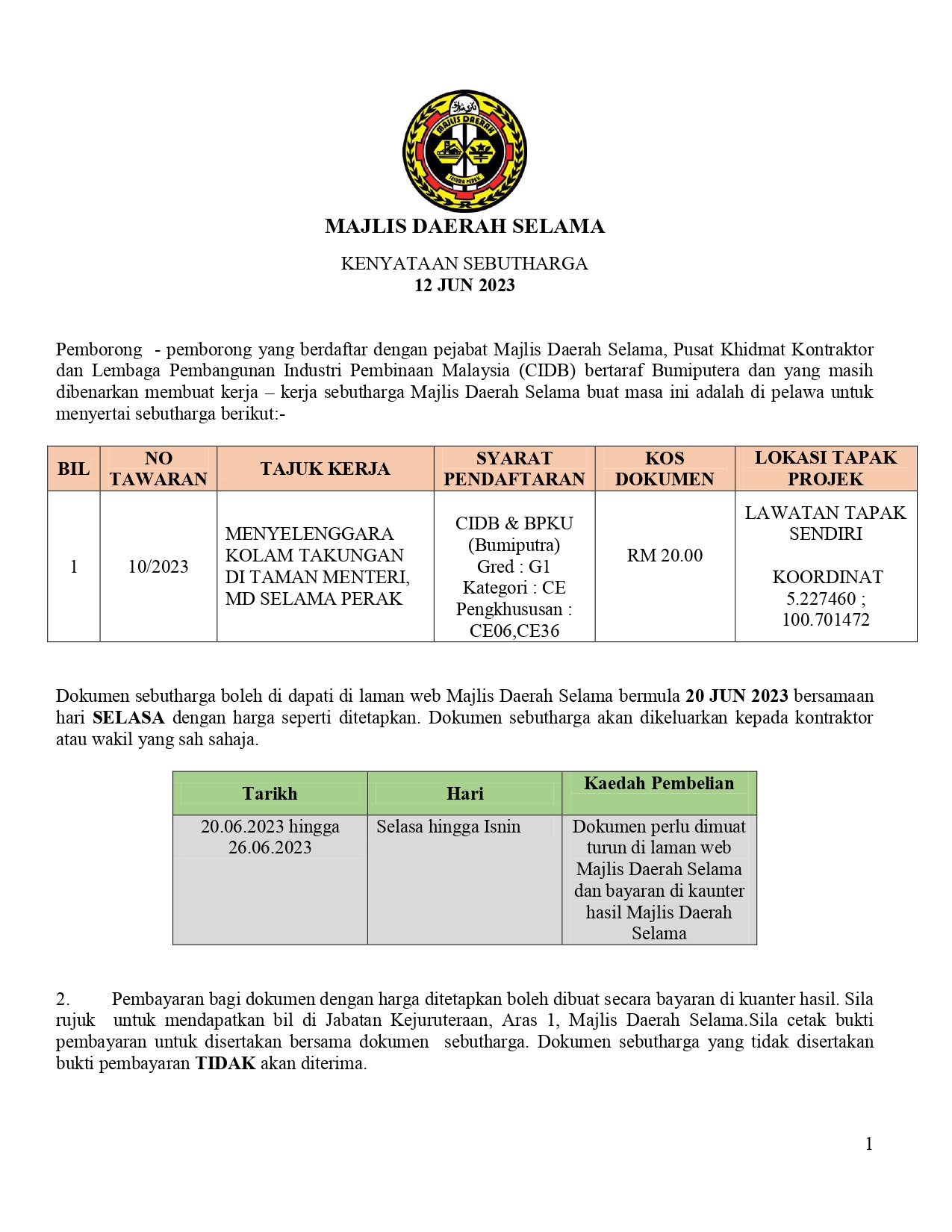IKLAN KENYATAAN SEBUTHARGA 12 JUN 2023