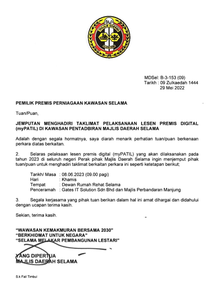 JEMPUTAN KE SESI LIBAT URUS BERKAITAN PELAKSANAAN SISTEM LESEN DIGITAL MyPATIL