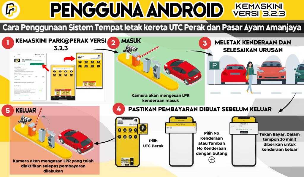 KEMASKINI PARK@PERAK VERSI 3.2.3 UNTUK MENU BAYARAN TEMPAT LETAK KERETA BERTINGKAT UTC PERAK (PENGGUNA ANDROID)