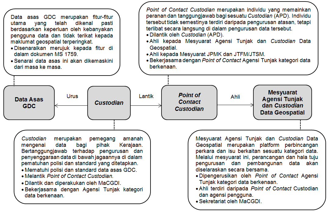 3. Memastikan data tersebut sedia untuk dikongsi oleh agensi kerajaan sama ada persekutuan dan negeri melalui program MyGDI secara dua hala.