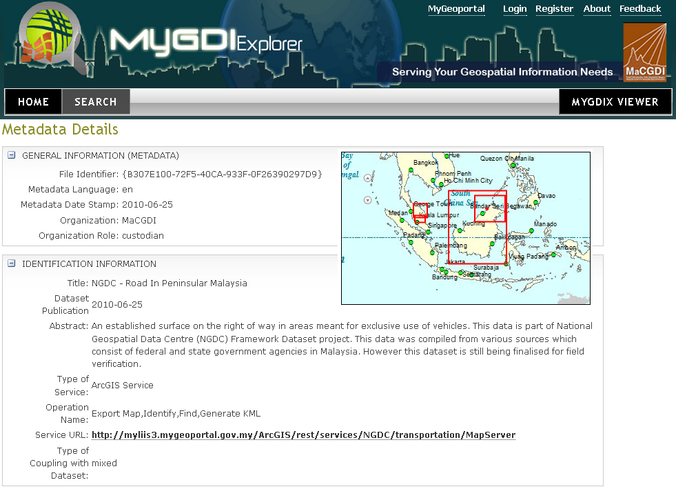 Rajah 3 : Paparan Template Metadata (MMS) melalui MyGDI Explorer