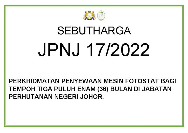 JPNJ 33/2022 BAGI PERKHIDMATAN MEMBEKAL PERALATAN KERJA LUAR BAGI JABATAN PERHUTANAN NEGERI JOHOR
